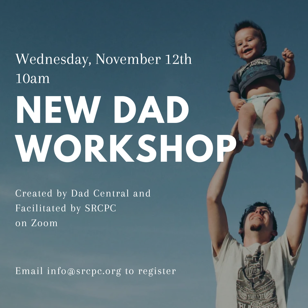 Created by Dad’s Central and facilitated by SRCPC, this workshop is designed to engage, open conversation, and educate new dads all about what to expect and how to manage the first year of parenting. It’s a huge life transition, and many dads aren’t aware of how important they are in the lives of their children – especially in the first year!