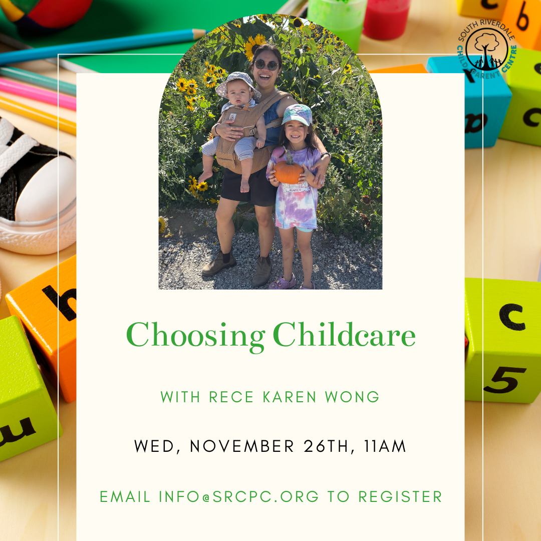 Join us for an Information Session and Q&A regarding the topic of Choosing Childcare. This will be held on Zoom and facilitated by RECE Karen Wong. Everyone is welcome!